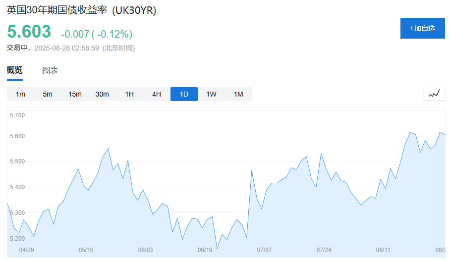 数据知道,自8月初以来,英国30年期国债收益率累计高涨了0.23个百分点,远超同期德国(0.13个百分点)和好意思国(0.06个百分点)的涨幅。